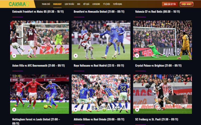 Trong số những website nổi bật hiện nay, Cakhia TV đã nhanh chóng trở thành lựa chọn quen thuộc của đông đảo fan bóng đá Việt Nam. Không chỉ cung cấp các trận đấu chất lượng, mượt mà, nơi đây còn mang đến trải nghiệm trực tuyến gần gũi với cảm giác xem trực tiếp nhưng thuận tiện và hiện đại hơn nhiều, giúp người xem tận hưởng từng khoảnh khắc đáng nhớ của môn thể thao vua.